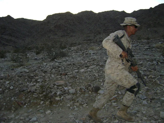 After a lengthily amount of time training at Camp Pendleton. The climax of training is 29 palms. Located in the beautifully depressing Yucca Valley. It's a month long training evolution that test your unit on everything you should have learned throughout the year. Jets, tanks, tracks, sun and SAND!!!! For about 1 month, you live in a hot, stuffy Quonset hut. Subject to all the extreme weather the desert environment produces. No time off, it's work all day and night.